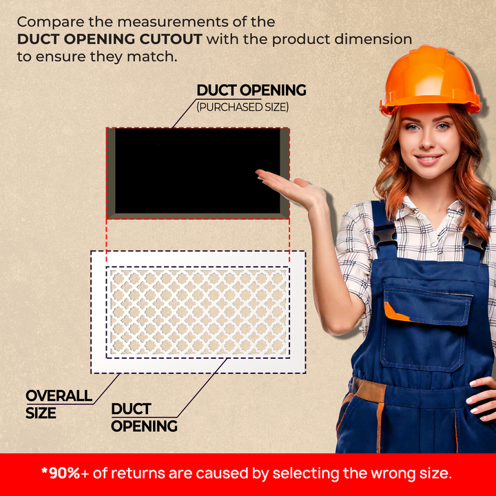 MEASUREMENTS: Please order by the opening size. Listed product sizes refer to the duct opening measurements, outer dimensions in most cases are 1" in each direction. The thickness of the material is 1/8". The back of this grille is flat with no protrusion which makes it very easy to attach to the wall or ceiling without any scratches or sides of the cover hanging around.