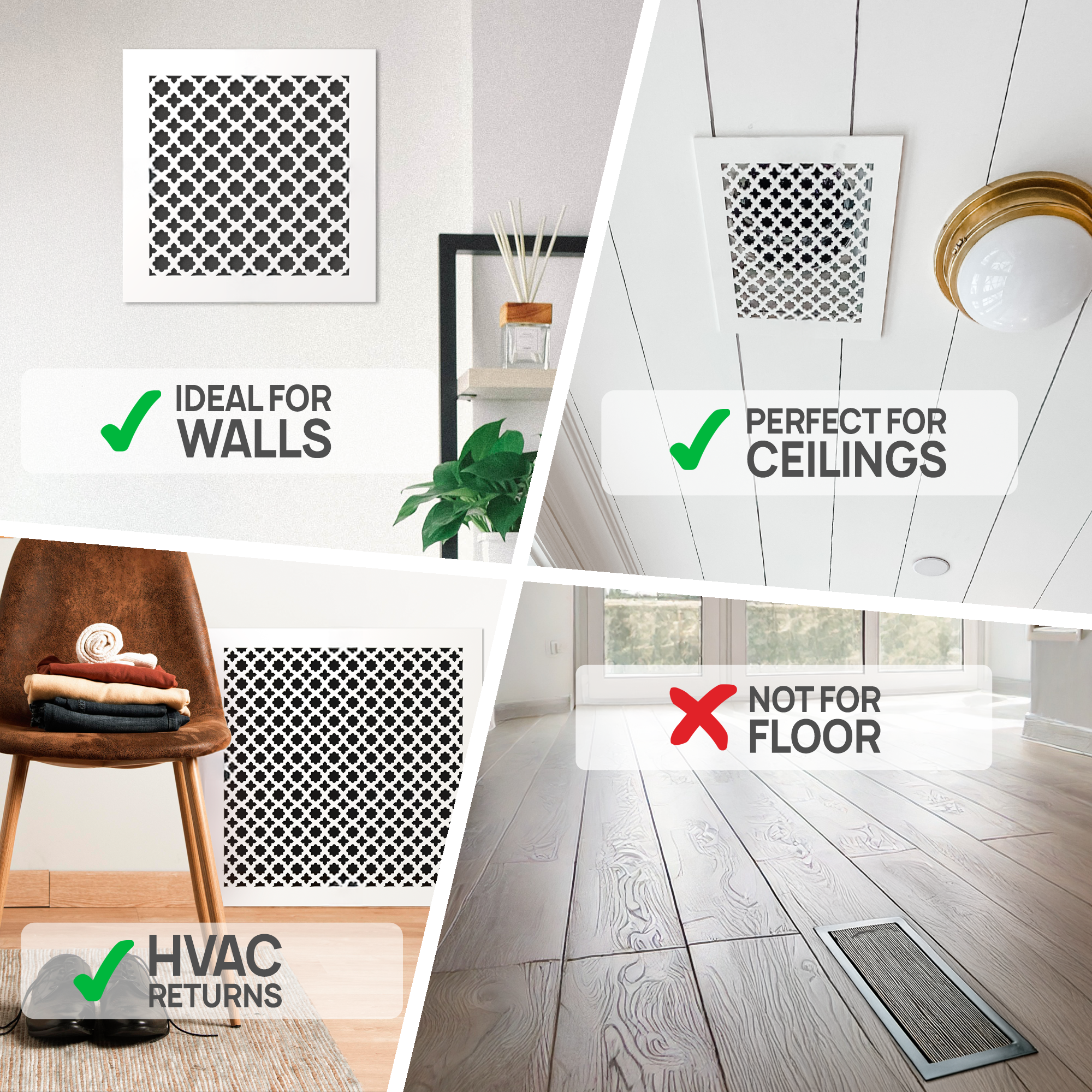 USE: These vent covers are perfect for walls and ceilings, not for floor use. SABA Home Decor offers a luxurious solution to unattractive, stamped-metal grilles and air vent covers that have always been a challenge for modern interior designers.
